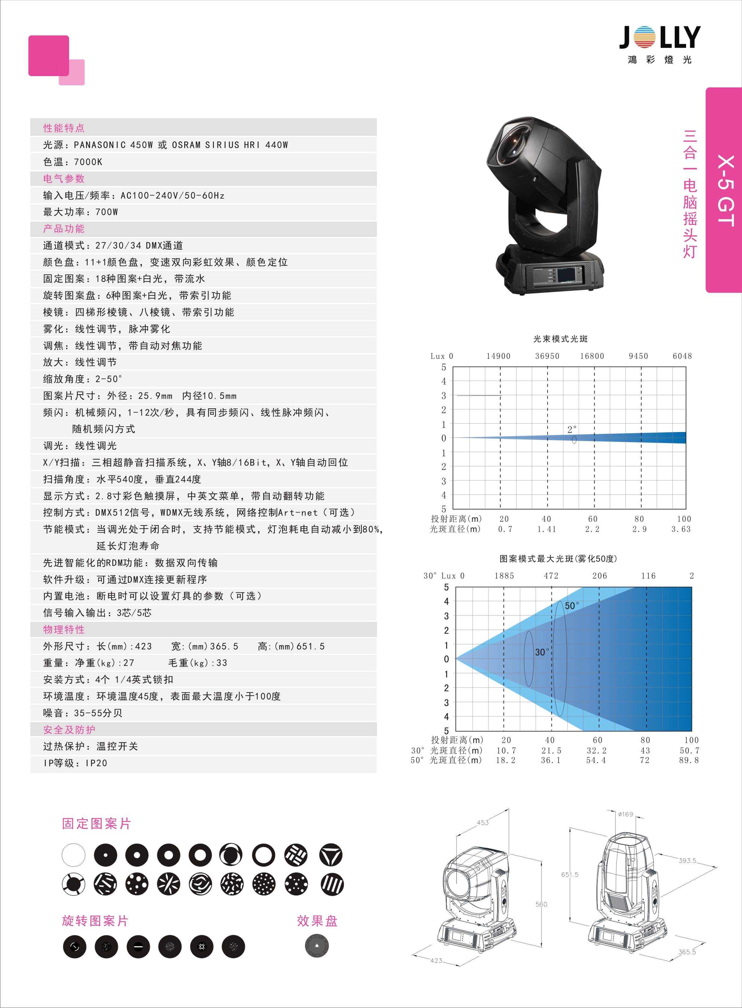 光源:PANASONIC 450W或OSRAM SIRIUS HRI 440W